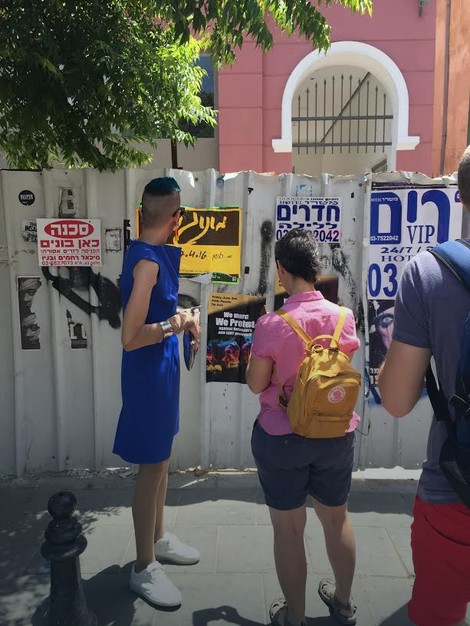 Roni Šokron (30), poznatiji pod svojim drag queen imenom Nona Chalant, je izraelski umetnik. Na sastanak sa nama došao je u plavoj haljini, jakom šminkom i ekstravagantnom frizurom. Uz široki osmeh, rekao je „krećemo". Prošli smo jednu ulicu, raskrsnicu, sledeću ulicu... Šetali smo pola sata po centru Tel Aviva i gotovo da niko nije ni obratio pažnju na nas. Svuda okolo vijorile su se zastave duginih boja, jer se dan kasnije održavala gej parada. A zastave su svuda - od zgrade opštine, ulične rasvete, prodavnica, menjačnica, prozora, terasa... Mislim da nikada nisam video toliko zastava u jednom danu, a zasigurno ne onih koje predstavljaju LGBT zajednicu. Nona kaže da je to još jedan od dokaza da je u gradu u kome živi biti gej normalno i prihvaćeno.